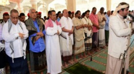 ادى فخامة الرئيس عبدربه منصور هادي رئيس الجمهورية اليوم صلاة الجمعة بجامع المعاشيق بالعاصمة المؤقتة عدن مع رئيس الوزراء الدكتور احمد عبيد بن دغر ونائب رئيس الوزراء وزير الداخلية اللواء حسين