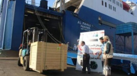 رست على رصيف ميناء المكلا صباح الثلاثاء سفينة شحن تحمل مساعدات إماراتية جديدة لقطاع الكهرباء بساحل حضرموت مكونة من قطع غيار وفلاتر في إطار الجهود الاماراتية الرامية لحل مشكلة انقطاع