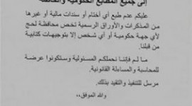 أصدر محافظ محافظة لحج  ، الدكتور ناصر الخبجي تعميما الى جميع المطابع الحكومية والخاصة، بشأن طبع الاختام والسندات والمذكرات الخاصة بمحافظة لحج.   وورد في التعميم :إلى جميع المطابع