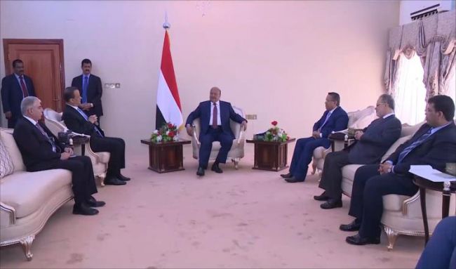 وقال العليمي إن الرئيس هادي أكد للمبعوث الأممي أن "الشعب اليمني لن يتعامل مع أي حلول أو أفكار تتجاوز المرجعيات وتتعامل مع نتائج الانقلاب وتتجاهل تضحيات الشعب".
