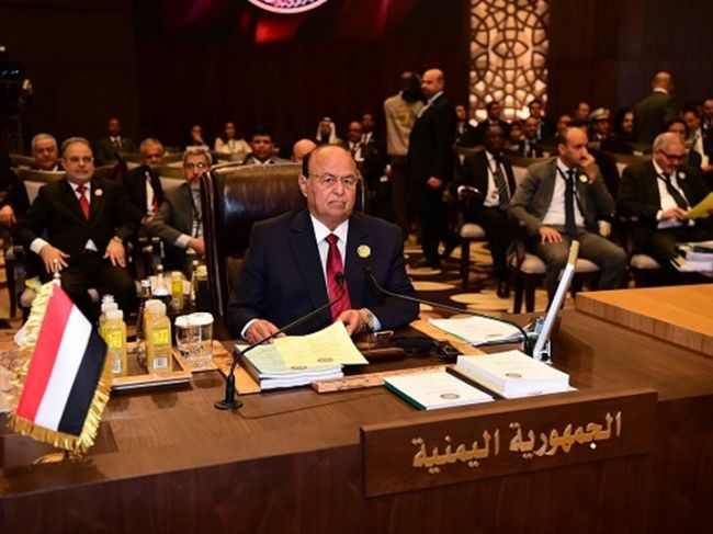 لقد كنا في الجمهورية اليمنية نأمل في استضافة هذه القمة في العاصمة صنعاء لنجمع العرب في عاصمتهم التاريخية صنعاء، لولا سيطرة الميليشيات الانقلابية للحوثي وصالح عليها واستمرارهم في تأزيم الأوضاع والإصرار على سد كل آفاق العودة للعملية السياسية وإيقاف حالة العنف ودائرة الحروب .. وفي هذا الإطار اسمحوا لي أن أضع أمامكم جملة من الحقائق حول القضية اليمنية في هذه الظروف الاستثنائية الصعبة :