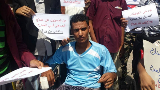 وطالب الجرحى الجهات المسئولة في الحكومة بتسفير ونقلهم إلى العلاج في الخارج بعد تدهور حالاتهم الصحية في مشافي عدن ، ووفاة أربعة من زملائهم الجرحى في مشافي عدن خلال فبراير ومارس الماضيان.