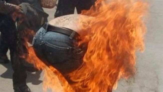 قالت مصادر إعلامية إن موظفا قام بإحراق نفسه بعد رش مادة البنزين علی جسمه بمدينة ذمار.