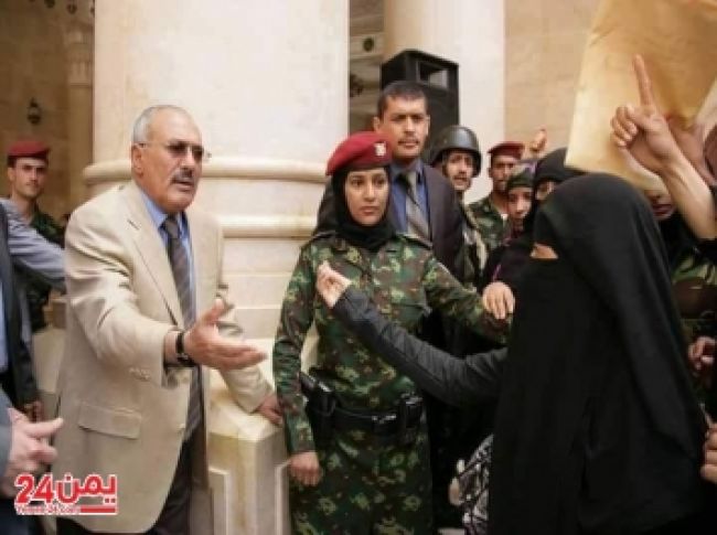 المخلوع صالح يسير على خطى القذافي ويظهر بحراسة نسائية لأول مرة (صورة)