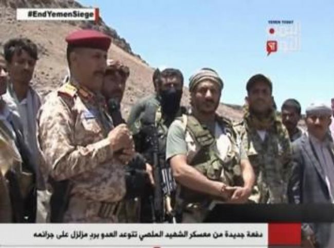 وظهر طارق صالح، الخميس, أثناء تخرج الدفعة الرابعة من المعسكر الملصي،، برفقة نائب رئيس هيئة الاركان بصنعاء اللواء علي الموشكي.