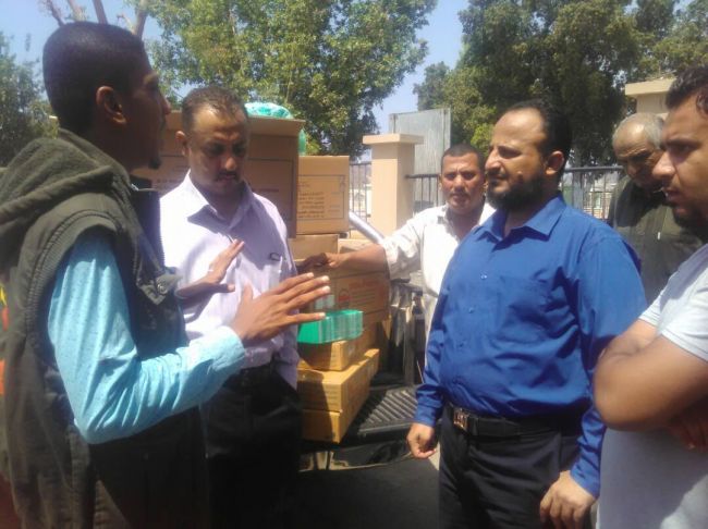 دشن مدير عام مديرية البريقة بمحافظة عدن هاني محمد اليزيدي ، توزيع حقيبتي الاسهالات والكوليرا للمراكز الصحية والمقدمة من منظمة كير العالمية .