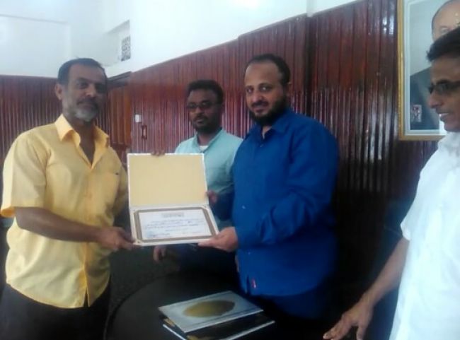 كرم مدير عام مديرية البريقة بمحافظة عدن هاني محمد اليزيدي ، عدد من الموظفين المبرزين في المديرية وذلك بمناسبة عيد العمال العالمي الأول من مايو تقديرا وعرفانا لجهودهم وتفانيهم واخلاصهم لعملهم وانضباطهم الوظيفي .
