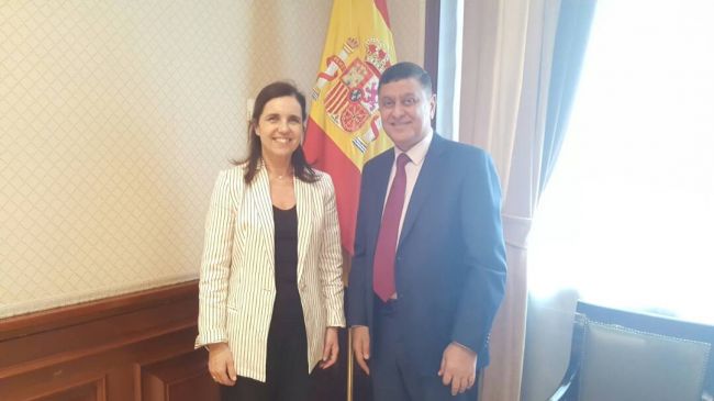 التقى سفير بلادنا لدى مملكة اسبانيا نبيل خالد ميسري ، اليوم ، رئيسة لجنة الشؤون الخارجية بمجلس النواب الإسباني بيلا روخو نوجيرا .