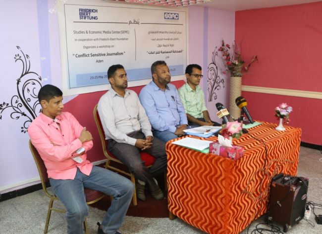 نظم مركز الدراسات والاعلام الاقتصادي بالتعاون مع مؤسسة فريدريش ايبرت الالمانية اليوم الثلاثاء دورة تدريبية حول الصحافة الحساسة للنزعات في محافظة عدن تستمر لثلاثة ايام.