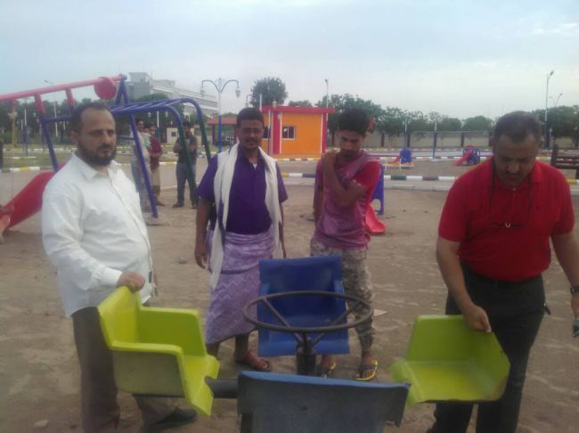 جاء ذلك خلال اطلاعه ومعه رئيس لجنة الخدمات في المجلس المحلي بالمديرية محمد عبدالوهاب نائف ، على وضع الحديقة بعد أن تعرضت بعض الالعاب للتكسير بسبب الاستخدام السيئ من قبل الشباب التي لا تتناسب اعمارهم مع بعض الالعاب مما ادى خروجها عن الجاهزية .