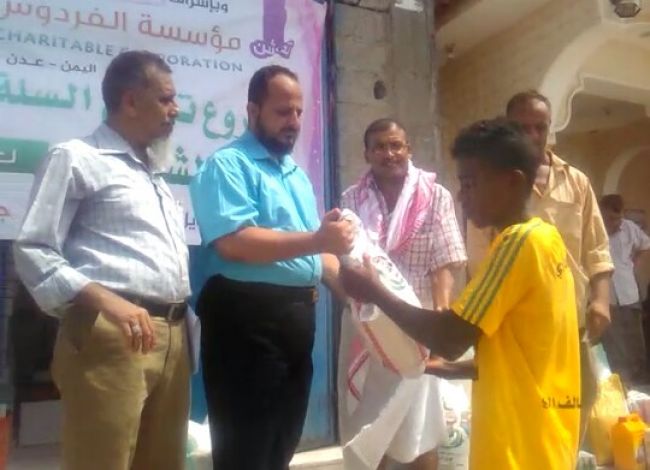 دشن مدير عام مديرية البريقة بمحافظة عدن هاني محمد اليزيدي ، توزيع السلة الغذائية لآسر شهداء المقاومة في المديرية والذي تنفذه مؤسسة سواعد الشباب لتنمية المجتمع ، بدعم من جمعية الفردوس الخيرية .