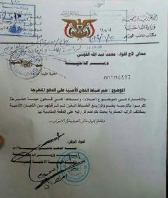 وبحسب وثيقة رسمية, فقد وجه القيادي الحوثي عبدالحكيم الحوثي “أبو الكرار ” المعين نائباً لوزير الداخلية في حكومة مايسمى بالانقاذ مذكرة إلى الوزير محمد عبدالله القوسي طالب فيها بضم من تم ترقيتهم على الدفع المتخرجة وفق الرتبة الممنوحة لكل عنصر .