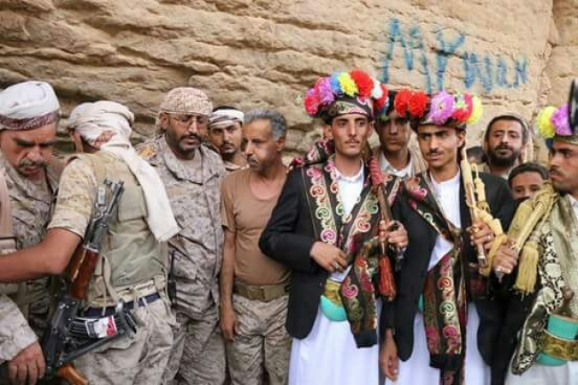 ورسم العرسان الثلاثة وهم جنود من منتسبي اللواء 310 مدرع، بزفافهم بين زملائهم فرحة مضاعفة في جبهة نهم البوابة الشرقية للعاصمة صنعاء، والتي حققت مؤخراً انتصارات كبيرة على وقع الضربات الموجعة للجيش الوطني بدعم من #التحالف العربي بقيادة #السعودية ضد الميليشيات الانقلابية.