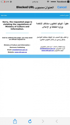 وقال عدد من متابعي الموقع في المملكة أنه عند محاولتهم فتح الموقع تاتي عبارة «عفوا الموقع المطلوب مخالف لأنظمة وزارة الثقافة والإعلام في المملكة».