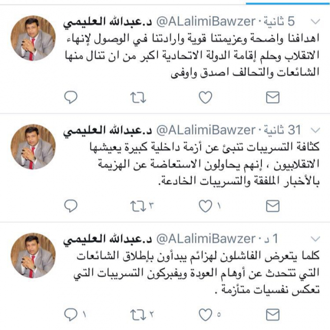 تغريدات من مدير مكتب رئيس الجمهورية آآ الدكتور عبدالله العليميآآ