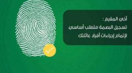 دعت المديرية العامة للجوازات السعودية المقيمين بسرعة المبادرة بتسجيل الخصائص الحيوية ”البصمة“ لهم ولإفراد عائلاتهم.   وقال الحساب الرسمي للجوزات السعودية على تويتر: أنه يمكن