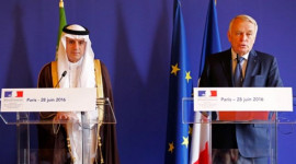 أعلن وزير الخارجية السعودي٬ عادل الجبير٬ في مؤتمر صحافي مع نظيره الفرنسي٬ جان مارك إيرولت٬ في باريس٬ عن "تطابق في رؤيتي السعودية وفرنسا بشأن الأوضاع في سوريا ولبنان واليمن ".   وقال الجبير