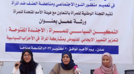 نظمت اللجنة الوطنية للمرأة بالتعاون مع هيئة الأمم المتحدة للمرأة اليوم بالعاصمة المؤقتة عدن ورشة عمل بعنوان التمكين السياسي للمرأة لتعزيز التمييز الايجابي للنهوض بمشاركة المرأة في الاحزاب