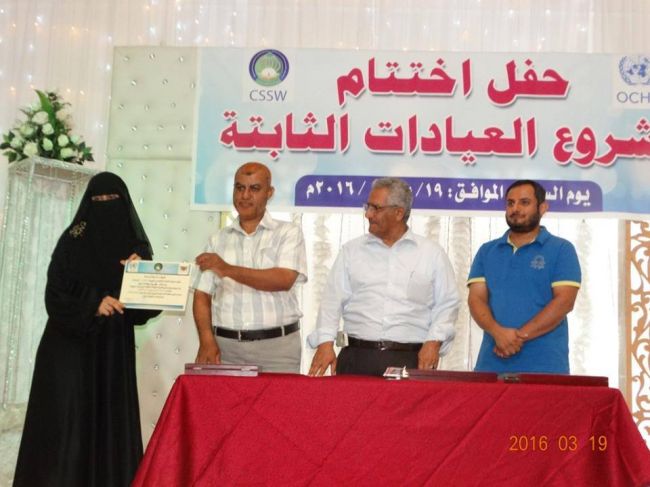 اختتم امس بعدن اعمال مشروع العيادات الثابتة والذي نظمته جمعية الاصلاح الخيرية على مدى اربعة اشهر وبدعم وتمويل من مكتب الامم المتحدة لتنسيق الشؤون الانسانية " اوتشا" .