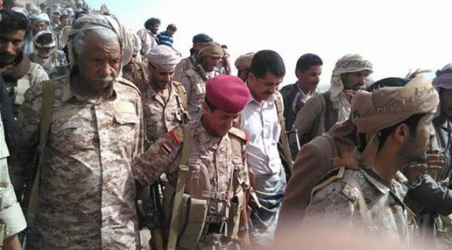 وتداول إعلاميون في مقاومة مأرب صورة للواء الشدادي وهو في مدينة حريب في مأرب صباح اليوم، بعد تطهيرها من المليشيات الانقلابية، وفقاً لموقع "يمن برس".