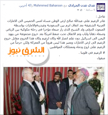 وقال الناشطون لـ"الشرق نيوز" انه بعد اتفاق ابرم بين السعودية وعبد ربة والإمارات بواسطة المبعوث الدولي ولد الشيخ الذي زار صنعاء مؤخرا في رحلة مكوكية بين الرياض وصنعاء ذهابا وإيابا تم الاتفاق تحت ضغط أمريكا بعد خروج مجموعة من يهود اليمن إلى إسرائيل دون علم أنصار الله