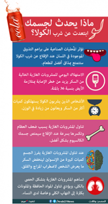 • الأشخاص الذين يشربون الكولا يستهلكون كميات أكثر من السكر ويعانون من زيادة في الوزن.