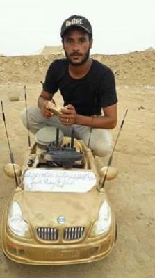 إبتكر شاب يمني مبدع سيارة الكترونية كاشفة للألغام ويتم التحكم بها عن بعد بواسطة )الريموت كونترول(.