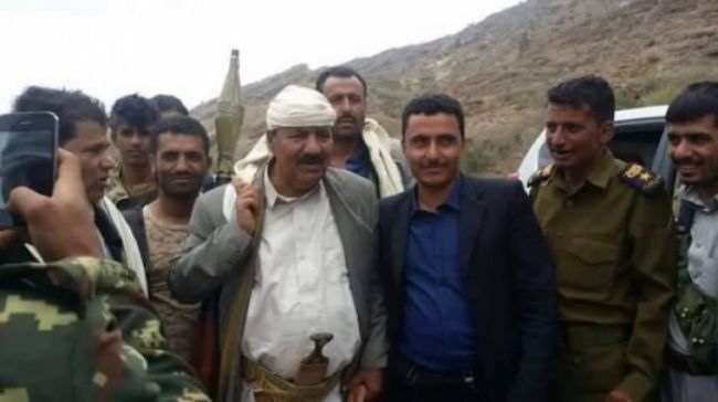 وتظهر الصورة الجندي القيادي في حزب المؤتمر والمقرب من صالح وهو يحمل سلاحه مع عدد من أفراد جماعة الحوثيين خلال تفقده لأحد المواقع التي يسيطرون عليها بمحافظة تعز.