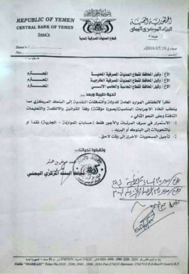 صدر محافظ البنك المركزي اليمن الدكتور " محمد عوض بن همام " توجيهات مكتوبة لفروع البنك كمحاولة أخيرة لإنقاذ العملة اليمنية .