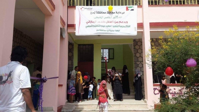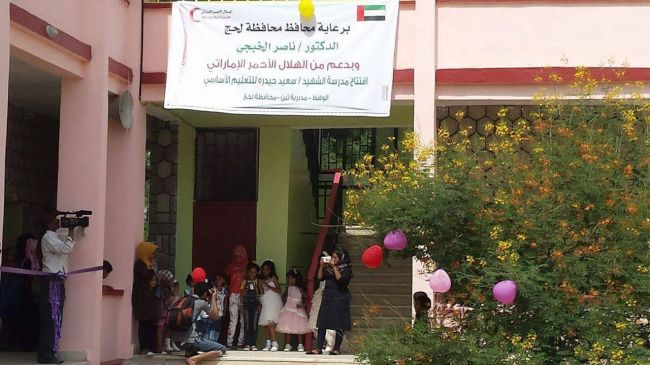 وفور تحرر المدينة أطلقت الإمارات خطواتها الإنسانية العاجلة عبر هيئة الهلال الأحمر الإماراتي ،من أجل إعادة الحياة والأمل لهذه المرافق والمنشآت التعليمية، وتبنت مشاريع تنموية لإعادة تأهيل عدد من مدارس محافظة لحج، تواصلاً لجهود دعم قطاع التعليم، وتصحيح مسار العملية التعليمية في المدن المحررة من سيطرة المتمردين.