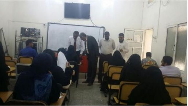 وطاف الدكتور محمد احمد موسى العبادي على القاعات الامتحانية برفقة عميد الكلية الدكتور جمال محمد الجعدني وكذلك النواب وامانة الكلية.