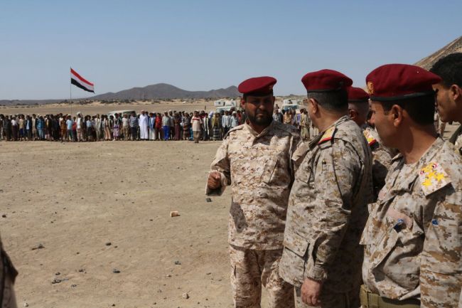 وخاطب منسوبي المعسكر قائلا: "النصر سيتحقق على ايديكم والشعب اليمني ينتظر منكم تخليصه من تلك الجرثومة التي جثمت عليه وارادت اعادة اليمن للوراء".