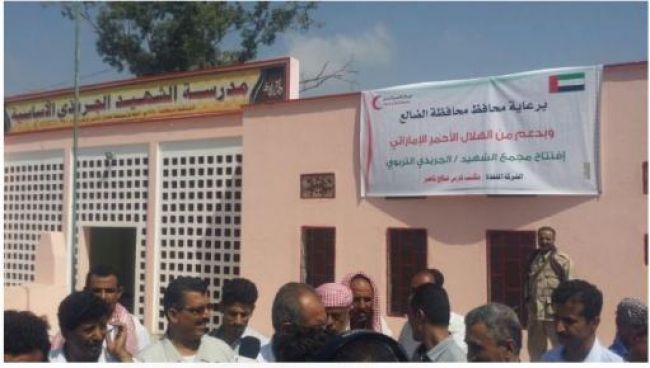 وأضاف بأن الهلال الاحمر الاماراتي كان أول الواصلين الى محافظة الضالع من خلال توصيل الاغاثة وإعادة بناء المدارس.