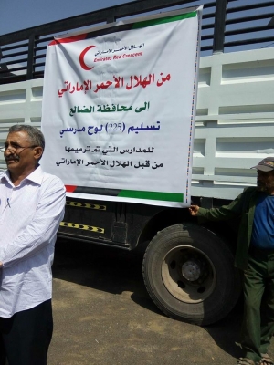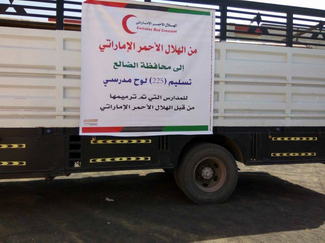 وفي الوقت ذاته سلم الهلال الاحمر الاماراتي مكتب التربية في محافظة الضالع عدد 225 لوحا كتابيا ( سبورة) حديثة.
