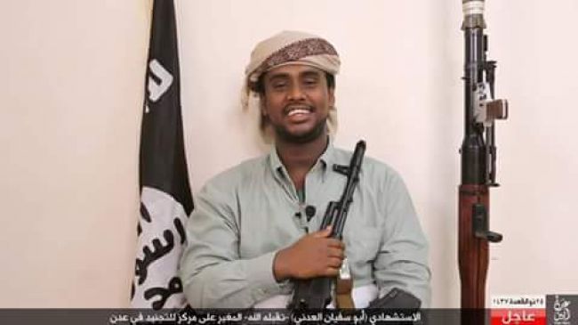 ونشرت حسابات على تويتر صورا للانتحاري الذي كناه التنظيم بـ " أبو سفيان العدني" الذي هاجم معسكرا للتجنيد في المدينة.
