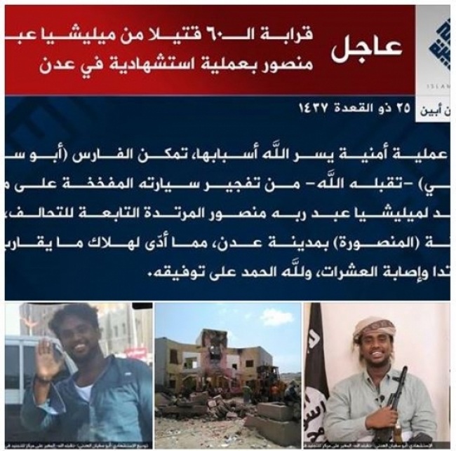 بالصــور : ماهو الاسم الحقيقي لـ ابوسفيان العدني الارهابي الذي فجر السيارة بعدن .. ومن اي مدينة .. وماهي اخر حصيلة للضحايا؟!