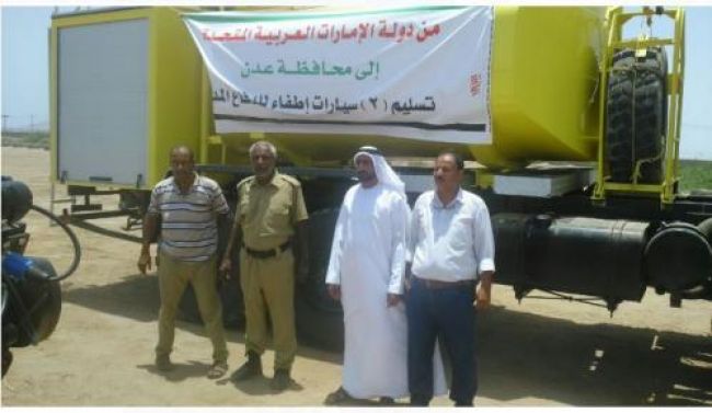 سلمت دولة الإمارات العربية المتحدة سيارتي إطفاء حرائق للدفاع المدني بالعاصمة عدن