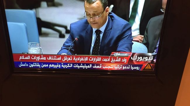 واكد ولد الشيخ إن الجيش اليمني القدرة على مواجهة المجموعات المتطرفة لكن هناك فوضى في مناطق عدة، مشيراً إلى إن التصعيد العسكري المستمر في اليمن لا يخدم إلا المجموعات الإرهابية. وأوضح إن الوضع الأنساني متدهور مبيناً إن عدد النازحين تجاوز 3 ملايين شخص.منوهاً في الوقت ذاته إن تأخر دفع رواتب الموظفين في اليمن يهدد بتفاقم الوضع الإنساني