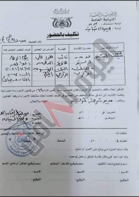 ونصت الدعوة بأن “المذكور أعلاه مكلف بالحضور في الزمن والمكان المحددين طبقا لنص المادة (1) من قانون الإجراءات الجزائية، ونلفت الانتباه إلى أنه في حالة التخلف عن الحضور في الموعد المحدد أعلاه سنتخذ الإجراءات وفقا للقانون.
