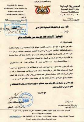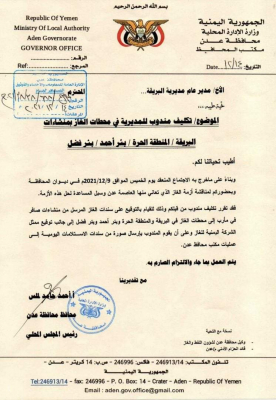 كما وجه لملس مدراء مديريتي البريقة وخور مكسر الى تعيين مندوبي للغاز في المحطات المركزية (البريقة- المنطقة الحرة-بئر فضل-بئر أحمد) للتوقيع على سندات الغاز المرسلة من منشأة صافر.