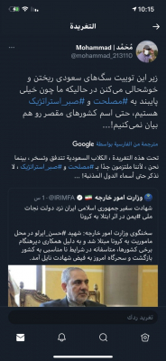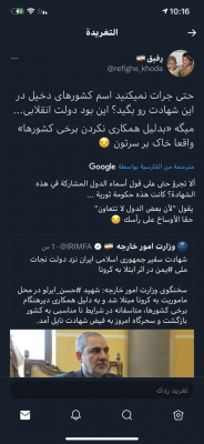 وقال مغردون إيرانيون: إن الخارجية الإيرانية، أخفت اسم السعودية من خبر مقتل إيرلو، لكن المملكة العربية السعودية سعيدة بهذا الإعلان.