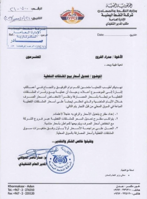 يأتي ذلك وسط مساعي لتوحيد تسعيرة المشتقات النفطية بكافة فروع شركة النفط بالمحافظات.