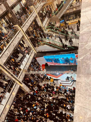 وقال المواطنون ان المئات حضروا الى المول وسط زحام خانق الامر الذي دعى ادارة المول لاغلاقه.