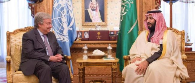 وأضافت الوكالة أن غوتيريش عبر عن امتنانه "لجهود المملكة لتحقيق الهدنة بين أطراف الأزمة في اليمن، وجهودها المستمرة للوصول لحل سياسي للأزمة اليمنية".