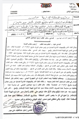 وعقب إلغاء "الإدارية " توجيهات رئيس الحكومة وجهت المحكمة مذكرة رسمية لمحافظ محافظة لحج في الــ27 من مارس الماضي طالبته فيها بسرعة تنفيذ الحكم الصادر وإعادة مدير عام الإستثمار في المحافظة الى ممارسة عمله بصورة طبيعية وفقاً لمنطوق الحكم الذي ارفقته للمحافظ طي مذكرتها.