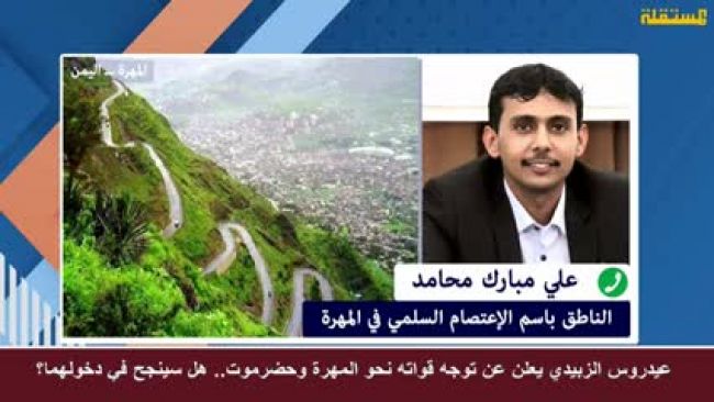 ولفت ناطق الاعتصام أن أبناء المهرة متمسكين بالأمن والاستقرار بالمحافظة ولن يسمحوا لمليشيات نعتبرها أدوات رخيصة تابعة للاحتلال الأجنبي وهذا ما نختلف مع عناصر الانتقالي في المهرة وفي وضع الجنوب بشكل عام.