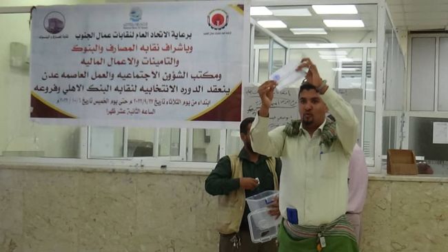 وجاءت هذه الانتخابات ضمن اعمال الدورة الانتخابية لنقابة البنك الأهلي اليمني وفروعه في العاصمة عدن والتي دشنت يوم الثلاثاء الماضي برعاية الاتحاد العام لنقابات عمال الجنوب وبأشراف نقابة المصارف والبنوك والتأمينات والأعمال المالية وذألك عقب انتهاء الفترة القانونية في العمل للنقابة السابقة .