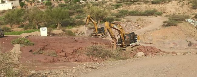 الصورة من الاعمال الجارية بمشروع إستكمال وإنشاء طريق عقبة خلق المقطع الاول والثاني بمديرية حالمين محافظة لحج.